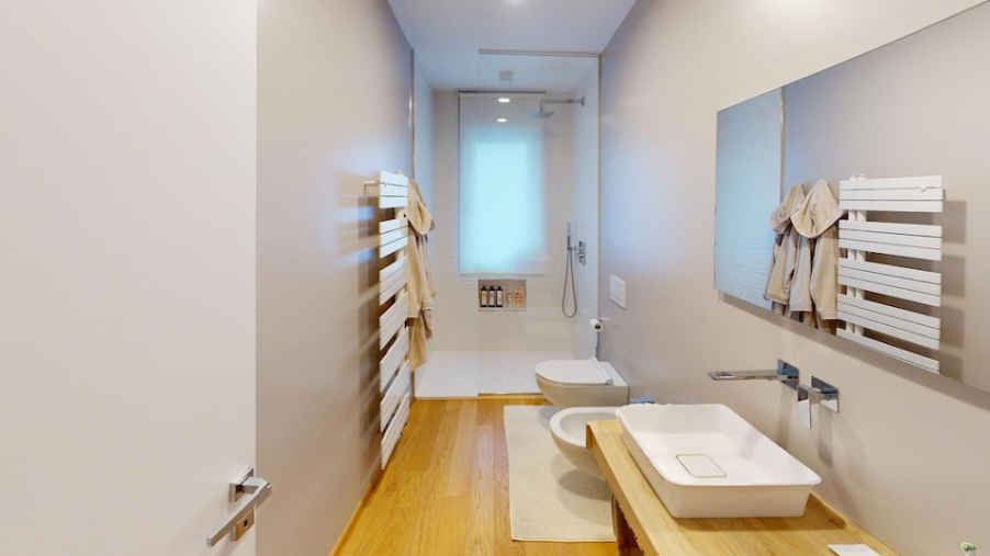 Thanks to the central heating system and the energy-efficient, digital electric boiler for hot water preparation, the running costs are manageable. The annual condominium fees are € 1,100.